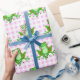 Grüne Frösche auf Pink Gingham Geschenkpapier