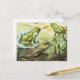 Eine Vintage Abbildung von grünen Fröschen, die am Wasser sitzen.