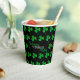 Auf einem schicken schwarzen Hintergrund ist dieses St Patrick Kleeblatt-Muster hell und funkelnd. In der Mitte wird der "Happy St Patrick’s Day" mit eleganter Typografie in Verbindung gebracht. Perfekte Papiertassen für die elegantesten St Patrick’s Day Feiern!