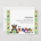 Dieses Design hat einen kleinen braunen Bären, der ein Geschenk hält und einen Party-Hut trägt. Das Design und die farbenfrohen Blöcke mit dem Text "Geburtstag" bilden eine Vielzahl von Kuchen. Auf der Vorderseite gibt es jede Menge benutzerdefinierbarer Text für alle Party-Informationen! Anpassbarer Text auf der Rückseite für Fahrtrichtungen oder andere Informationen, die Sie gewollt haben. Wenn keine zusätzlichen Informationen benötigt werden, können Sie den Text löschen und das Bild bleibt erhalten.Mache von unserem Mengenrabatt Gebrauch!