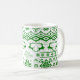Niedliche grüne Weihnachtsrinder und Schneeflocken geometrisch nahtlose Muster über weißem Hintergrund. Anpassbare Tasse