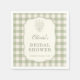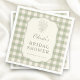 Servietten für die Brautparty mit einem sanften, grünen Gingham-Muster. Das saubere, klassische Design passt gut zu garteninspirierten und zeitlosen Brautparty-Themen. Geeignet für Brautpartys, Mittagessen und Vorhochzeitsfeiern. Vollständig anpassbarer Text mit einem druckfertigen Design für Cocktail- oder Mittagessensservietten.