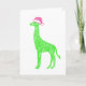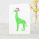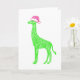 Grüne Giraffe mit rosa Weihnachtsmannmütze Karte