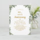 Feiern Sie Ihren 50. Hochzeitstag oder Ihre gelobte Erneuerung mit dieser romantischen Einladung mit Aquarellgrüne, eleganter Goldschrift-Typografie und botanischen Blumenakzenten. Ein modernes Landdesign - perfekt für stilvolle Party mit Gedächtnis.