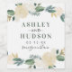 Das Hochzeitsweinflaschenlabel zeichnet sich durch eine personalisierte, kundenspezifische Monogramm- und Weinsortentexte aus. Die Aufnahme wird durch einen Blumenrahmen mit eleganten Aquarellfarben, gemalter Rose, Pony, ranunculus Blume und Blätter in neutralen Frühlings- oder Sommerfarben in Weiß-, Creme-, Gold-, Grün- und Dunkelgrau hervorgehoben.