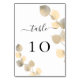 Ein stilvoller weißer Hintergrund mit goldenen, eukalyptus-grünen Sprigs. Personalisieren und Ihre Tischnummern. Schwarze Buchstaben.