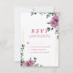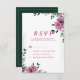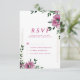 Botanische lila, rosa, goldfarbene und dunkelgrüne Aquarellfarben Rose Blume Hochzeit RSVP Einladungen. Es ist perfekt für jedes raffinierte und raffinierte Mädchen oder jeden. Dieses Design eignet sich ideal für ein trendiges und elegantes Party-Event. Passen Sie dieses Design mit Ihrer Nachricht und personalisierten Informationen an. Alle Designs sind gedruckt.