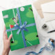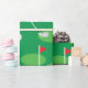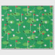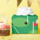 Ein grünes Muster von Golfballen, Clubs und roten Fahnen für den Golfspieler