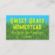 Grünes Gras und blaue Himmelskarten mit fett gedrucktem Text. Behalt es einfach mit dem Farm oder dem Firmennamen in einem lustigen gedruckten Schriftart. Verwenden Sie ein oder zwei Zeilen. Fügen Sie unter dem Namen eine oder zwei weitere Zeilen mit Ort und Kontakt oder andere hinzu. Verwenden Sie auf der Rückseite die Vorlage, um bei Bedarf weitere Informationen hinzuzufügen. Entfernen Sie den gesamten Text, um die Rückseite leer verlassen. Die Farben sind Aquablau, Grasgrün und Zauber.