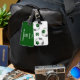 Dieses soccer-Thema Gepäckanhänger ist einfach mit drei zufällig arrangierten grünen, grauen und weißen Fußballbällen entworfen - personalisieren Sie mit Spielernamen und Monogramm auf der Vorderseite, Adressangaben auf der Rückseite - von katz_d_zynes