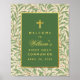 Dieses elegante botanische, geschlechtsneutrale Design weist im Hintergrund und auf der Rückseite grüne Weiden-Blätter auf. Der Text befindet sich in einem grünen Rechteck mit Imitaten, die an der Goldfolie grenzen. Über dem Text befindet sich ein (Imitate-)Goldkreuz. Der gesamte Text kann personalisiert sein und hat eine goldene Farbe, die dem Goldrahmen ähnelt. Der Name ist in einem eleganten kalligrafischen Skript geschrieben, die Erholung in Kappen. Das Vintage Hintergrundmuster ist ein Wallpaper-Muster aus dem 19. Jahrhundert von William Morris (1834 - 1896) mit dem Namen "Willow Bough", bestehend aus Weidenzweigen mit grünen Blätter, die jetzt im öffentlichen Bereich zu sehen sind.