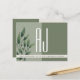Rustikale, elegante, einfache, zeitgenössische Typografie Salbei grüne Hochzeit speichern das Datum Ankündigung Postkarte, mit riesigen Monogramm Initialen an der Vorderseite, Aquarell und moderne Kalligraphie.