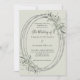 Ein schlauer grüner Hintergrund. Ein ovales Imitat silberfarbener Rahmen mit schlängelgrüner Vegetation. Personalisieren und fügen Sie Ihre Namen, Details. Schwarzer Text.