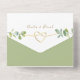 Boho, elegant, botanisch, modern, sage grün alles in einem Hochzeitsempfang mit Imitaten goldenes Seilherz, Aquarell Eukalyptusgrün und individuelles Bild des Ehepaares im Hintergrund. Fügen Sie Ihr Foto, Ihre Hochzeitsdetails und uAwg.
