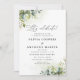 Grüne Hochzeit Einladung. Dieses stilvolle und elegante Hotel bietet eine wunderschöne, handbemalte Aquarellgarage. Finden Sie passende Artikel in der Grüne Eukalyptus Floral Collection.