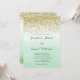 Hochzeitseinladung mit Imitats Gold Glitzer Design und minzgrün ombre Aquarell Hintergrund.