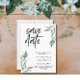 Diese Save the Date Einladung basiert nur auf botanischem Design, vielleicht perfekt auf Ihre Wünsche abgestimmt. Wenn Sie eine Einladung mögen, bereichert mit dem interessanten Schriftart, dann ist das für Sie perfekt.