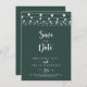 Grüne Hochzeit von String-Lichtern speichern das D Save The Date