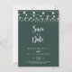 Diese Saite leuchtet grüne Hochzeit speichern das Datum ist perfekt für eine rustikale Hochzeit. Das Design zeichnet sich durch schöne handbemalte Saitenleuchten in einem grünen Hintergrund aus.