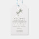 Diese weiße und schlaue, tropische Hochzeitsmarke am Strand ist ideal für Begrüßungstaschen und Hochzeiten in Urlaubsort. Sie zeichnet sich durch ein schlichtes minimalistisches Design mit zwei Palmen und eine individuell gestaltbare Begrüßungsbotschaft aus. Bitte lesen Sie die Kollektion für die passende Hochzeitseinladung und weitere passende Produkte.