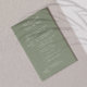 Set den Ton für Ihr besonderes Wochenende mit dieser schönen weichen grünen Traukarte. Seine beruhigende, erdige Farbe verbindet sich perfekt mit minimalistischem Design, um einen zeitlosen Look zu schaffen, den Ihre Gäste Liebe werden. Die Timeline-Karte am Wochenende behalte jedem über alle wichtigen Ereignisse auf dem Laufenden, sodass Ihr Fest reibungslos und unvergesslich wird. Ideal für Paare, die auf inspirierten Hochzeiten in den Bereichen Rustikal, Boho oder Garten verzaubern. Es ist eine schöne Art, die Gäste mit Stil und Anmut zu begrüßen. Verfügbar als gedruckte Karte oder bequemer digitaler Download für Ihre Bedürfnisse.