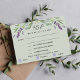 Ein schlauer grüner Hintergrund, schwarzer Text. Mit Lavendelblumen und Eukalyptus-Pflanzen dekoriert. Personalisieren und fügen Sie die Antwort nach Datum und Menüauswahl. Zurück: Farbe des grünen Hintergrunds