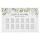 Wasserfarbenes Blattgrün Hochzeitssitzplan. Teil einer modernen, minimalen Hochzeitskollektion. Zwölf Hochzeitstische, Tische können bei Bedarf gelöscht werden.