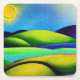 Digitales Aquarellbild in lebhaften Blau-, Grün- und Gelbtönen mit Sonne und Vögeln.