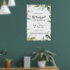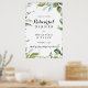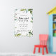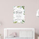 Dieses Begrüßungszeichen für das Probe-Dinner im Grünen eignet sich perfekt für eine einfache Hochzeitsfeier. Die Einrichtung besteht vorwiegend aus grünen tropischen Blätter mit einer Touch von rosafarbenen Blume.
