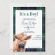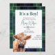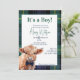 Grüne karierte Hochlandkuh-Babydusche Einladung