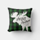 Dieses unterhaltsame Urlaubskissen mit grünem karierten, weißem Elch und stilvoller Typografie, die "Merry Christmoose" lesen.