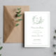 Klassische und elegante Wildblume leafy Wappen Monogramm und Salbei Grün formale Hochzeit speichern Sie das Datum Karte.