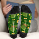 Eine grüne Crew-Socke, die in Clover, Irish Hats und Golden Coins für das irische Glück am St. Patrick's Day entworfen wurde