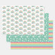 Glücklich ein Geburtstag Packpapier mit grünen vierblättrigen Kleeblatten und einem glitzernden Regenbogen in hübschen Farben. St Patrick's Day thematisierte erste Geburtstagsparty, die Papierblätter grün mit einem vierblättriges Kleeblatt Muster, Regenbogenstreifen und einem glücklichen Muster verpackt. Farbenfroh grünes Glück eines Geburtstags Party Verpacken Papierblätter mit gemischten Mustern.