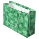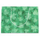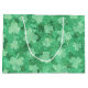 Große, glänzende Geschenktasche mit einem Bild von grünen Kleeblättern auf Grün mit goldenen Falten. Siehe passende mittlere Geschenktasche, Einladung, Umschläge, Gefälligkeitsboxen, Gefälligkeitsmarke, Etikett, Rundaufkleber und Umhüllungspapier. Die gesamte St. Patrick's Day Geschenktasche finden Sie in den BESONDEREN TOUCHS| Gastgeschenken