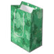 Mittlere glänzende Geschenktasche mit einem Bild von grünen Kleeblättern auf Grün mit goldenen Falten. Siehe passende große Geschenktasche, Einladung, Umschläge, Gefälligkeitsboxen, Gefälligkeitsmarke, Etikett, Rundaufkleber und Verpackungspapier. Die gesamte St. Patrick's Day Geschenktasche finden Sie in den BESONDEREN TOUCHS| Gastgeschenken