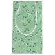 Eine hübsche kleine Geschenktasche mit einem Muster dunkelgrüner Kleeblätter, in Weiß umrissen, auf einem hellgrünen Hintergrund. Als Teil der Posh & Painterly 'Kleeblatts'-Kollektion kann dieses Muster an jedes Geschenktüchen oder -kartentuch angepasst werden.