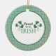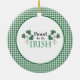 Ein Rundschmuck für den St Patrick's Day, mit grünen Kleeblatt-Blätter und 'Proud to be Irish' in keltischen Schriften, auf weißem Hintergrund mit einer Karo Gingham-Grenze. Teil der Posh & Painterly 'Kleeblatts Kollektion.