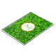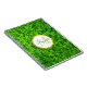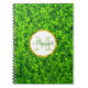 Ein Wendelheft mit frischem Frühjahrsdesign mit einem Feld üppiger grüner Klee mit farbigen kleinen Wassertropfen. Personalisieren Sie mit Ihrem Namen und Monogramm initial in der Mitte auf einem weißen Rahmen mit einem IMITAT goldenen Folie.