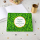 Ein Hochzeitsgast-Gästebuch mit irischem Frühjahrsdesign - mit frischem Frühjahrsdesign und üppigem Grün-Kleeblatt mit zartem Wassertropfen. Personalisieren Sie mit Ihren Namen und Hochzeitsdatum in der Mitte eines weißen Rahmen mit einem IMITAT goldenen Rahmen.