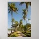 Grüne Kokospalme in der Nähe des Grüngrasfeldes Poster