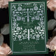 Treten Sie ein in die Geschichte von Romantik und Legende! Diese mittelalterlichen Fantasy Hochzeitseinladungen zeigen ein echtes Schwert, das mit silbernen Blumen in einer reichen grünen Kulisse verstrickt ist. Sie sind ideal für Paare, die eine bezaubernde und zeitlose Touch für ihren besonderen Tag suchen. Beachten Sie, dass das Silber auf diesen Einladungen NICHT mit echter Folie bedruckt und in flachen Farben bedruckt ist.