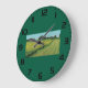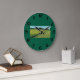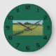 Verbringen Sie die Zeit mit Blick auf die friedliche Natur mit dieser minimalistischen grünen Landschaftswanduhr. Die flache Kunstillustration einer ruhigen ländlichen Wiese dient als schöner Mittelpunkt für eine Küche, ein Büro oder ein Wohnzimmer. Seine sauberen Linien und beruhigenden Erdtöne machen es zu einem funktionalen Kunstwerk, das moderne Farmhaus- oder zeitgenössische Haust Dekorationen ergänzt.