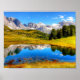 Grüne Landschaft mit Teich und schneebedeckten Ber Poster