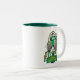 Grüne Laterne auf dekorativem Hintergrund Zweifarbige Tasse