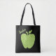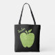 Whimsical Lehrer's Tote-Tasche, mit der Grafik eines grünen Leoparden Druck Apfel, auf einem schwarzen Hintergrund. Grüner benutzerdefinierter Text liest Lehrer und kann personalisiert sein, zu lesen, was Sie gewollt haben.