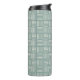 Diese Thermalflasche hat ein modernes Design von Sets von fünf weißen Linien, abwechselnd horizontal und vertikal, wiederholt über das Design auf einem Retro-grünen Hintergrund. Wenn Ihnen das Design gefällt, aber verschiedene Farben will, schreiben Sie mir.