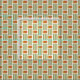 Dieser Stoff hat ein modernes Design aus fünf grünen Linien und einem goldgerundeten Rechteck mit einem orangefarbenen, abgerundeten Rechteck, das sich in der Gestaltung wiederholt.
