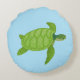 Grüne Meeresschildkröte auf türkisfarbenem Hinterg Rundes Kissen