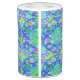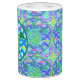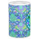 Eine grünes Seeschildkröte mit gemusterter Muschel, gegen ein blaues Wasser/ein Wellenmuster, mit einigen bunten Fischen. Kreisentwurf mit einer grünen Grenze. Meeresschildkröte Art.